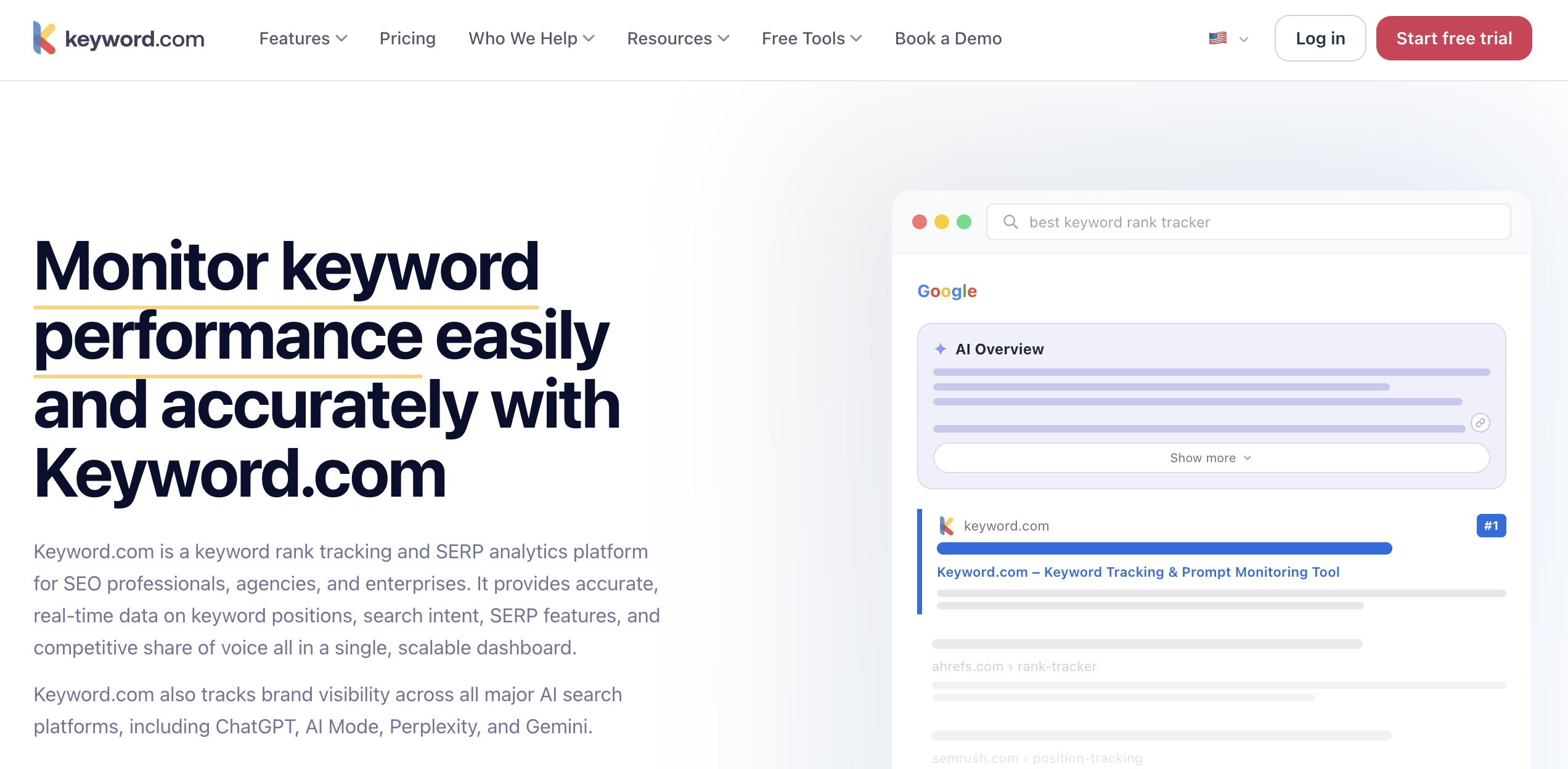 | 16 | Keyword.com | Simple, accurate AI rank checks | Custom | 4+ platforms |