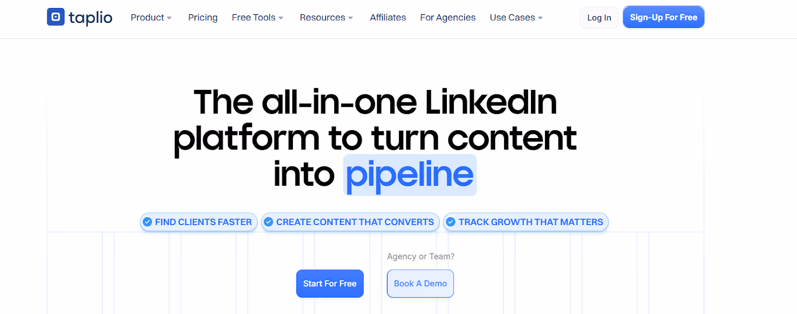 Taplio is an AI-powered LinkedIn tool focused on personal brand growth through content creation, scheduling, and engagement. It's popular among founders, creators, and individual sales professionals who want to build a following and generate inbound interest through consistent posting.