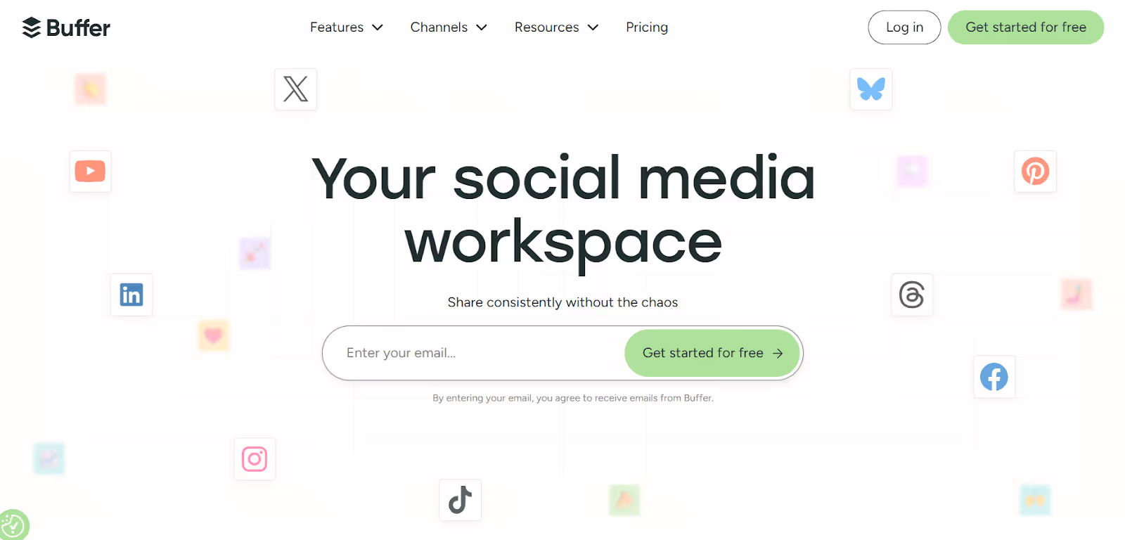 Buffer is one of the most established social media schedulers on the market, and it remains the go-to social media scheduler for agencies and B2B marketing teams managing content across LinkedIn, Instagram, X, Facebook, and Threads from one workspace.