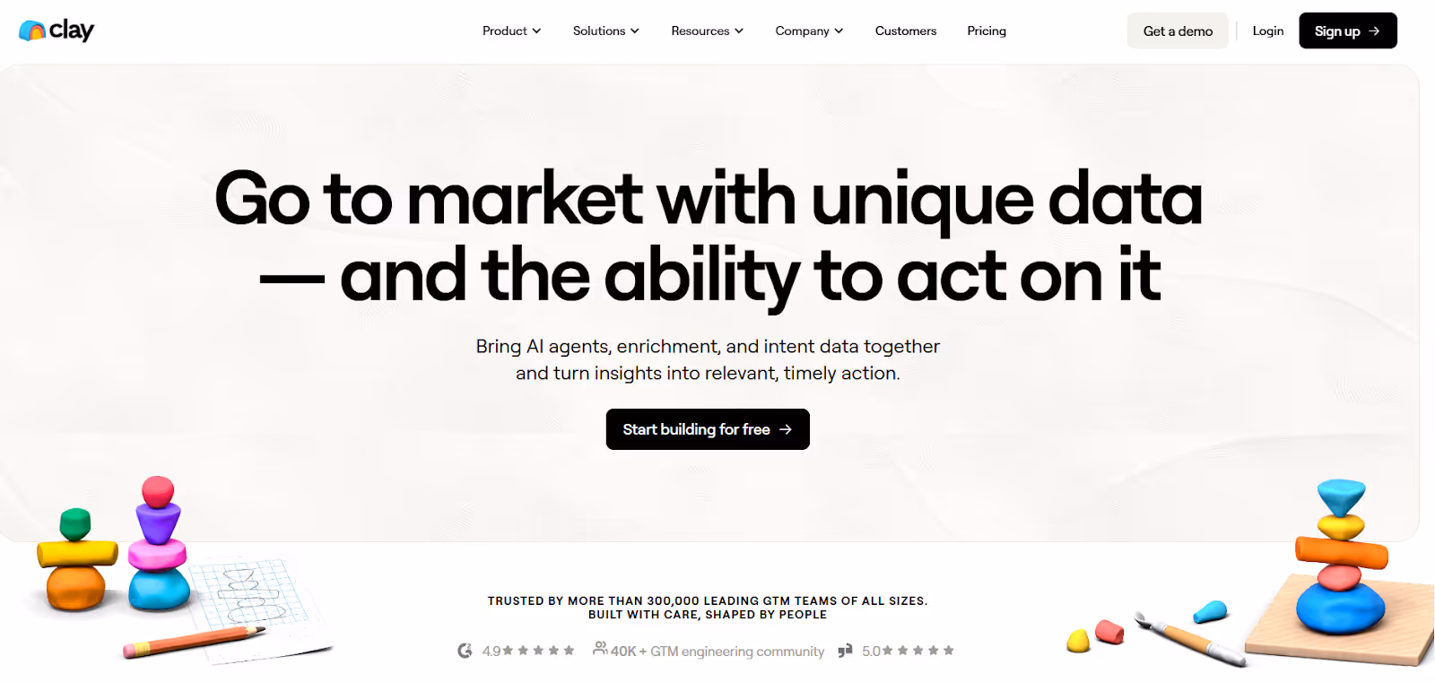 Clay is a GTM data and workflow platform used by revenue teams to build, enrich, and activate ICP-targeted prospect lists. It sits at the top of the b2b lead generation strategies stack — it's where you figure out exactly who to reach, what context to use, and how to personalize before any outreach begins.