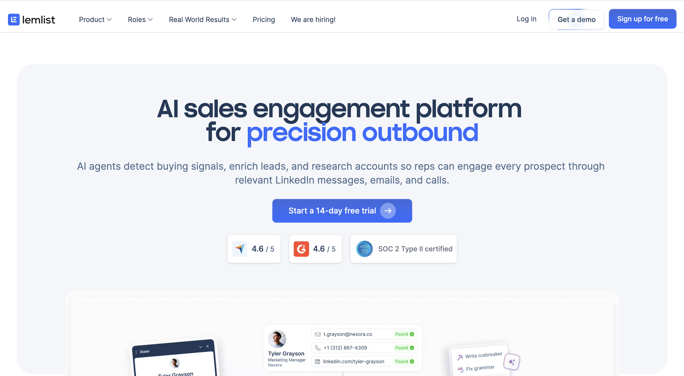 - Native integrations with Salesforce, HubSpot, Outreach, and Salesloft