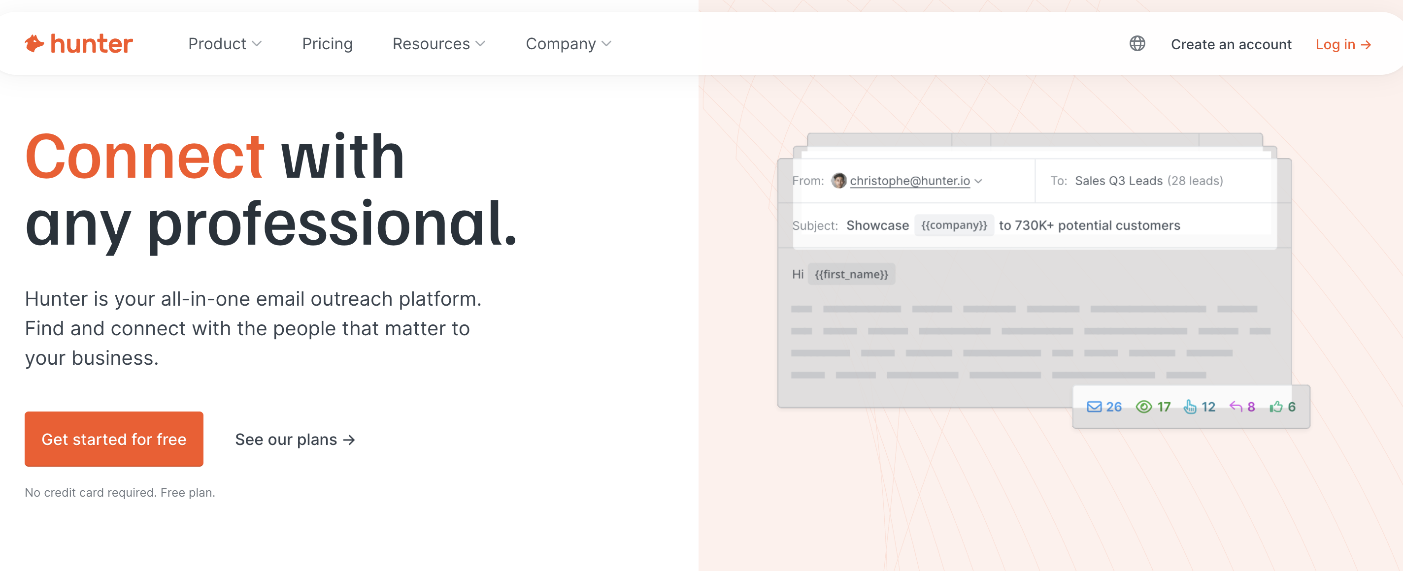 Hunter.io is a lightweight, reliable tool for finding and verifying email addresses at a specific company domain. It's not a full prospecting platform — but as a point solution, it's one of the cleanest tools in the stack for getting accurate contact information fast.